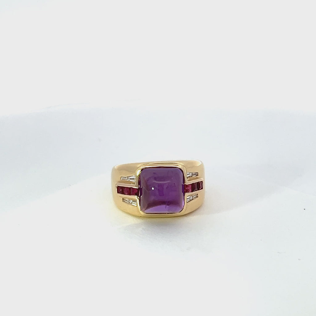 18k yellow gold Amethyst, Ruby and Diamond Ring