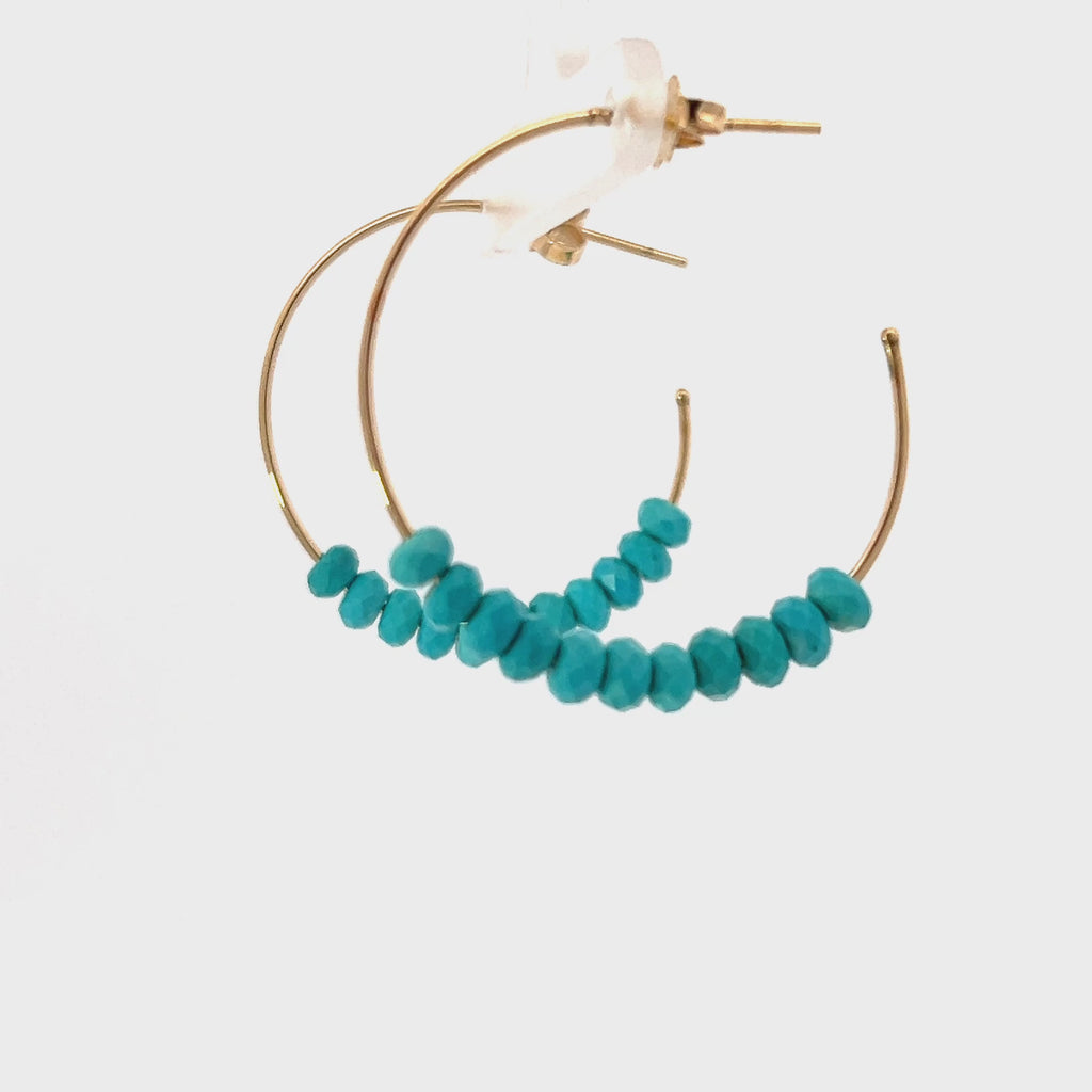 Genuine turquoise beads on 14K yellow gold hoops