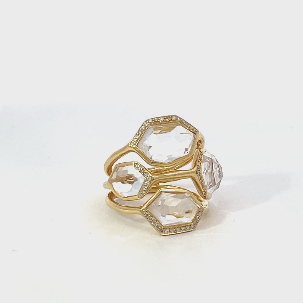 18K yellow gold white rock crystal and diamond accent ring by Ippolita